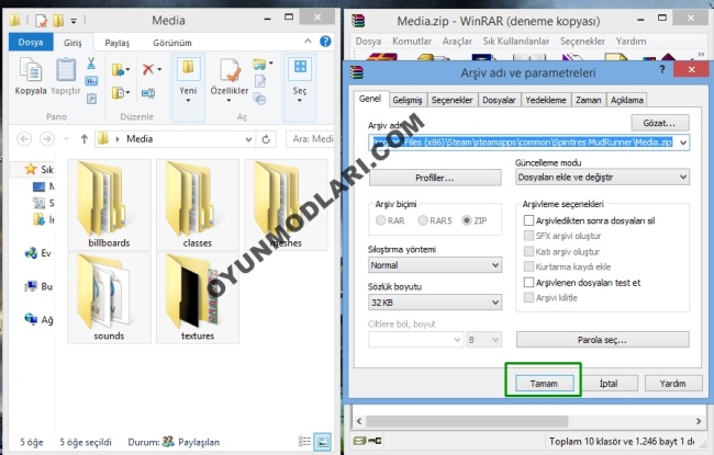 Modu İndirdikten sonra Zip Dosyasını açın. İçerisindeki Media klasörünü Masaüstüne çıkarın.
